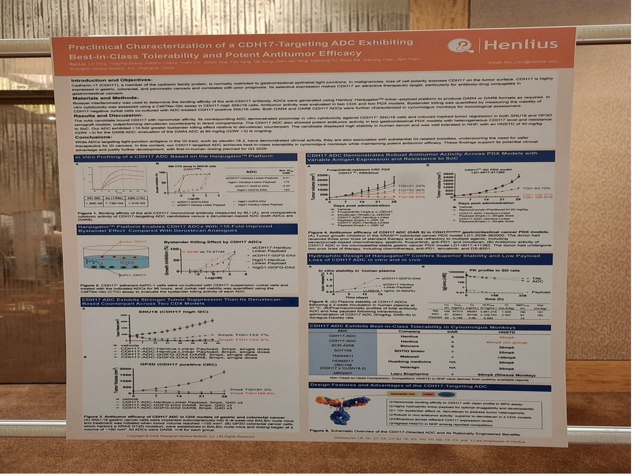創新加速度|復宏漢霖CDH17 ADC臨床前數據首次發佈:彰顯消化道腫瘤領域差異化優勢