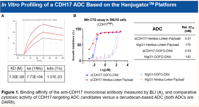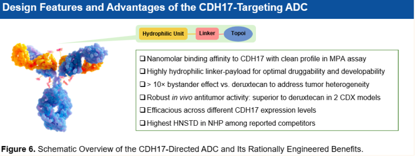· 高親和力與特異性: 該ADC使用的抗體對CDH17具有納摩爾級(nanomolar)的結合親和力;不會與鈣粘蛋白家族的其他成員發生脫靶結合,且在MPA檢測中表現乾淨。